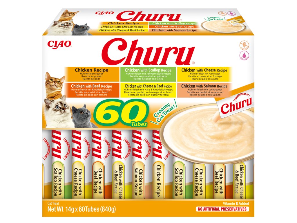 Výběr krémových pamlsků Churu ve variaci s kuřetem. Zdravé mlsání s nízkým obsahem kalorií, bez konzervantů, chemických aromat, bez barviv a umělých dochucovadel. Inovativní měkká konzistence pamlsku Churu vám umožní trávit společné chvíle s vaší kočičkou hravým a interaktivním způsobem. Kočičí pamlsky Churu mají vysoký obsah vody a díky tomu jsou vhodným doplňkem k suchému krmivu nebo pro kočky, které málo pijí. Pamlsky Churu jsou 100% přírodní a zdravé mlsání pro kočky všech věkových kategorií. Churu jsou ideální pro ukrytí tablety na odčervení či jiného léku, který je potřeba kočce nenásilně podat.