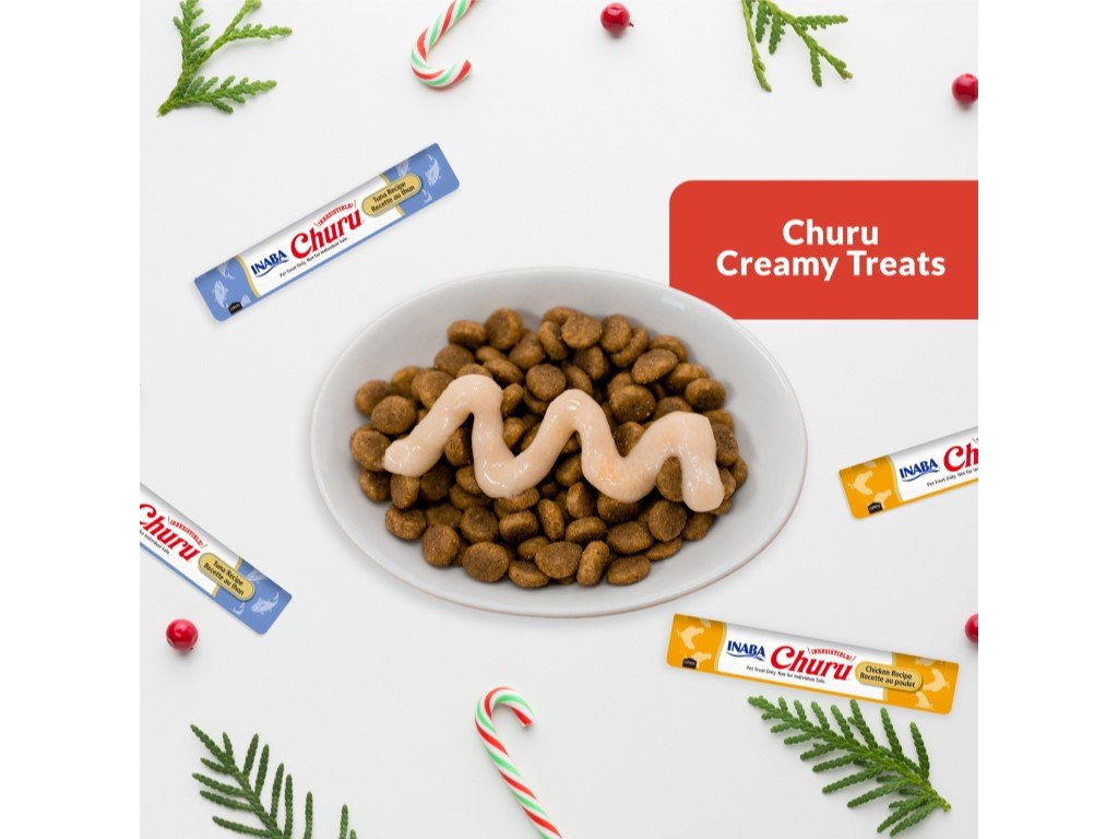 Darujte vaší kočičce ten nejlepší vánoční dárek v podobě oblíbených krémových pamlsků Churu. Součástí balení je 10x tuňák a 10x kuřecí Churu. Krémové pamlsky Churu mají nízký obsah kalorií, ale vysoký obsah vody a jsou bez obilovin, bez konzervačních látek, bez umělých příchutí a barviv.
