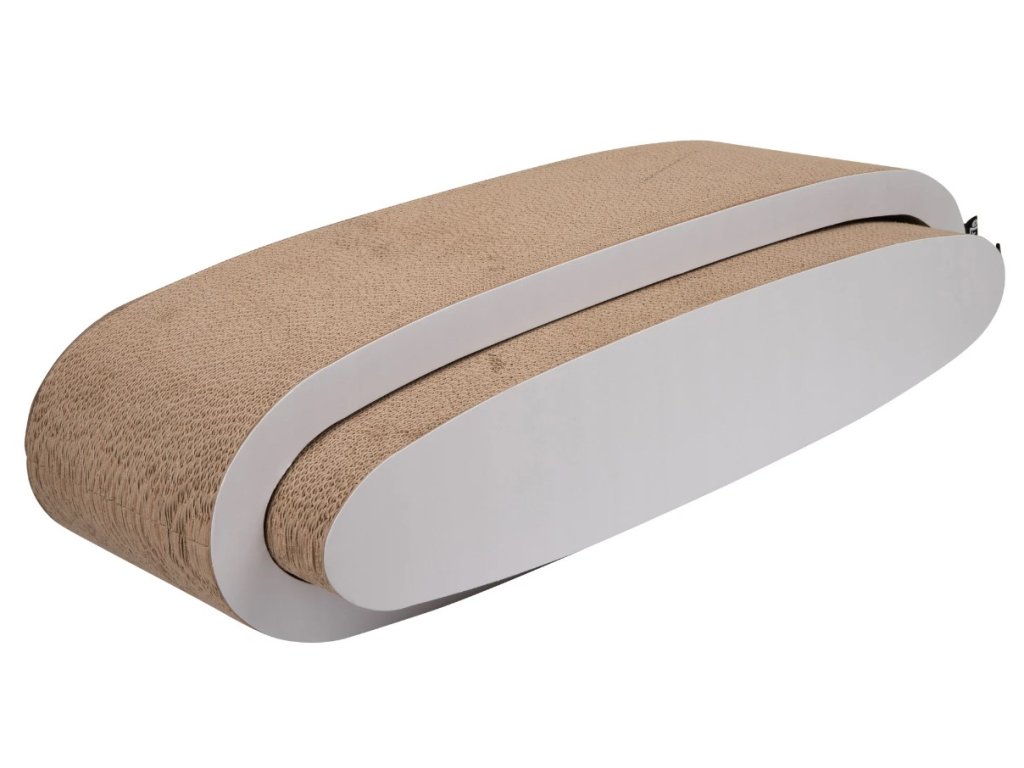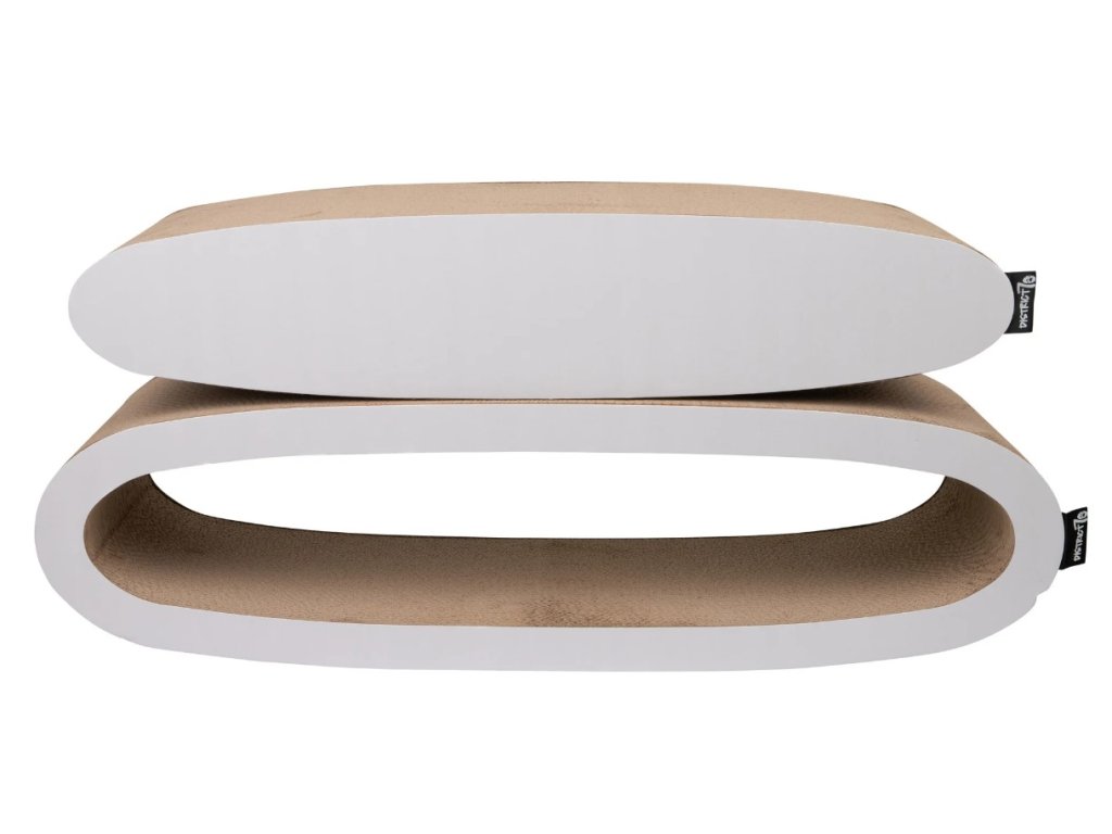 Škrabadlo OVAL OFFICE obsahuje dva kartony na škrábání, které lze do sebe zasunout. Díky jeho oboustrannému provedení jej lze otáčet a mít tak vždy k dispozici 2 plochy pro škrábání vaší kočky, což zdvojnásobuje životnost škrabadla. Když už mluvíme o udržitelnosti, když se škrabadlo pro kočky opotřebuje, můžete ho jednoduše vyhodit spolu se starým papírem. Kartonové škrabadlo OVAL OFFICE je nezbytnou výbavou pro všechny milovníky interiéru, kteří by rádi svému kočičímu kamarádovi dopřáli příjemné místo ke spánku a škrábání. Stylové škrabadlo OVAL OFFICE, které kombinuje moderní tvar s módním designem a neutrální barvou.