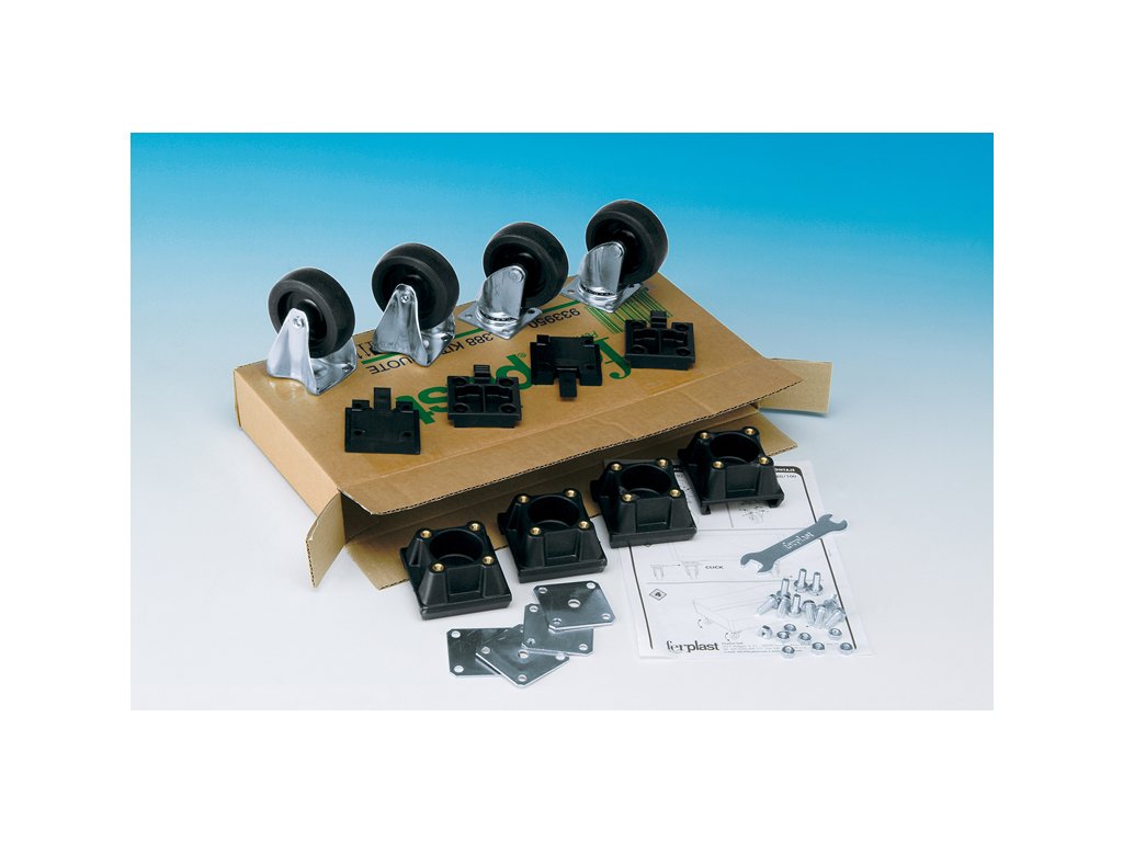 Všechny sady obsahují 4 kola, 2 pevná kola a 2 otočná kola s brzdou.