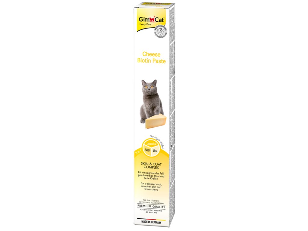 Biotinu se ne náhodou říká vitamín krásy. S pastou od Gimcat pomáhá tělu zachovávat sílu a vitalitu. Sýrová pasta bude oblíbeným pamlskem vaší kočky.