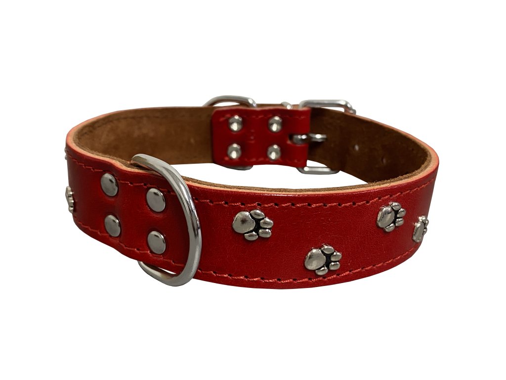 Obojek je vyroben z velmi kvalitní hovězí kůže. Pro maximální pevnost je podlepen koženým bombírem a po obvodu obšit režnou nití. Vzhled zajistí řada tlapek. Pro připnutí jsou obojky vybaveny dvěmi silnými svařovanými déčky. Jsou vhodné pro střední a velká plemena.