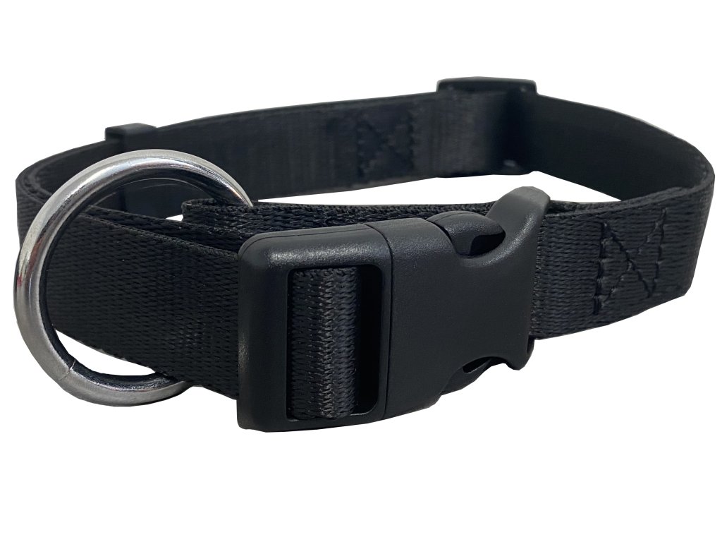 Obojky jsou vyrobeny z velmi měkkého a příjemného nylonového popruhu. Disponují zapínáním na plastovou přezku a mají jednoduše nastavitelný obvod. Součástí je svařovaný kovový kroužek pro připnutí vodítka. Obojky jsou vhodné pro střední i velká plemena. Před zapnutím provlékněte přezku kroužkem. Pokud ji neprovléknete, dochází tak ke kroucení obojku. Rozměry: 2,5 cm x 4-66 cm. Barva: černá.