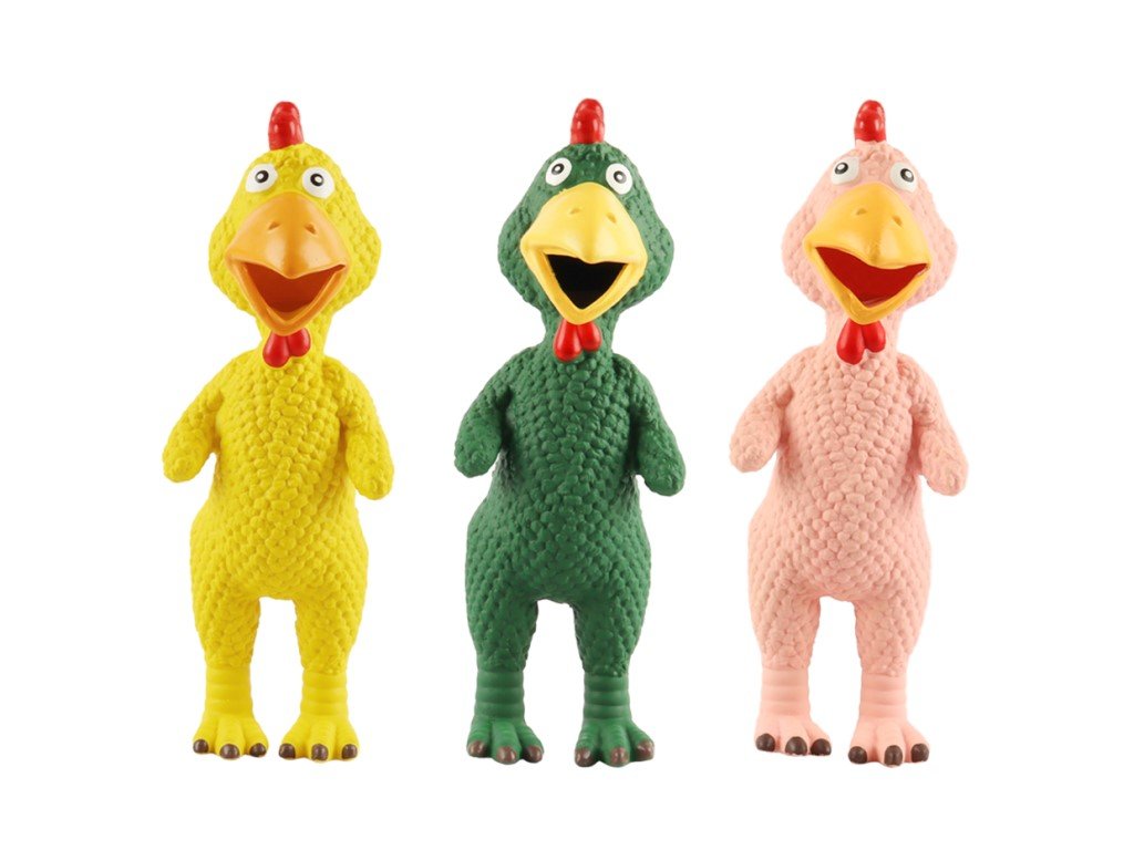 Huhubamboo pískací hračka pro psy latexové kuře mix barev 26cm