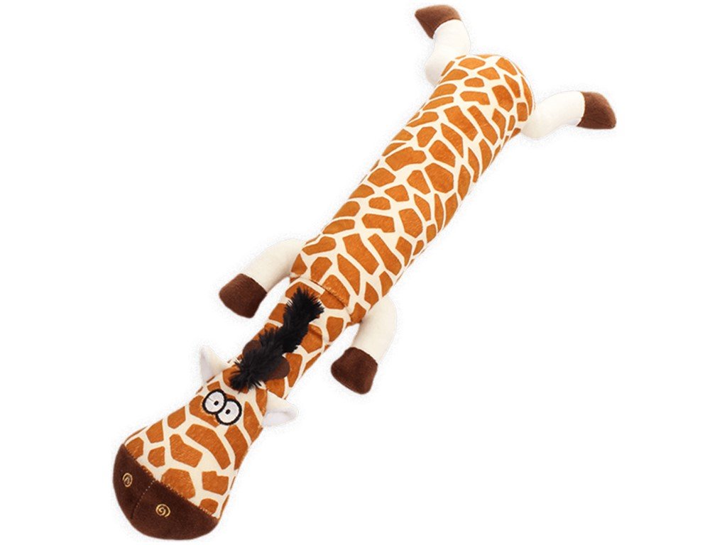 Huhubamboo plyšová hračka pro psy v podobě žirafy s dlouhým tělem. Dlouhé tělo umožní příjemnější úchop v tlamě, takže vašemu čtyřnohému příteli se neustále bude chtít se o hračku přetahovat a hrát si s ní.