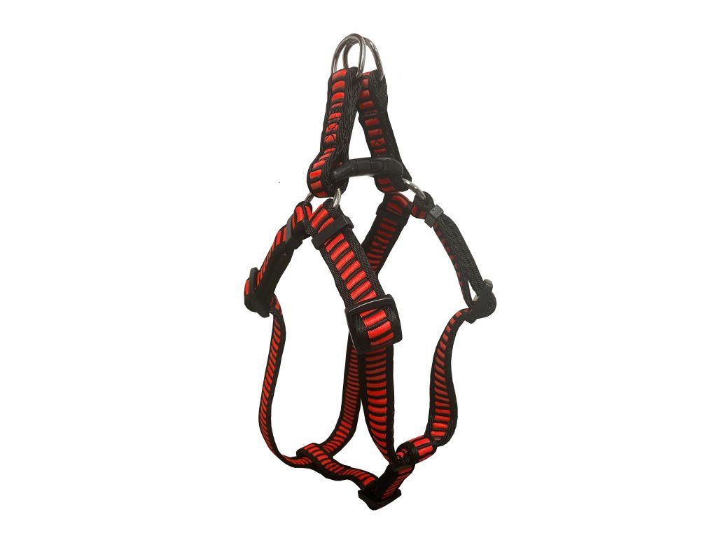 Postroje jsou vyrobené z velmi měkkého a příjemného popruhu s vetkaným vzorem žebříku. Postroje jsou pevně prošité na všech částech a vynikájí možností nastavení obvod krku, hrudního koše a hrudníku. Jsou vhodné pro malá a střední plemena.