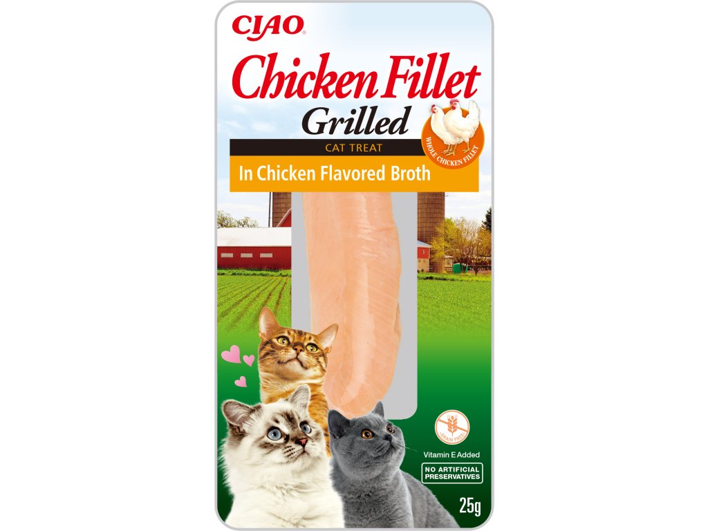 Je vyrobený ze 100% kuřecího filé v poctivém kuřecím vývaru. Šťavnatý grilovaný filet z farmářského kuřete pro gurmánský zážitek. Neodolatelná chuť a vůně poctivého masa. Křehké filátko potěší vaší kočičku jako pamlsek nebo jako doplněk běžné krmné dávky. Lahodný vývar skvěle ochutí jakékoliv granule a pomůže zvýšit chuť k jídlu. Pamlsky neobsahují obiloviny, umělá barviva, chemická dochucovadla a aromata. Zároveň mají nízký obsah kalorií, pro skvělou kondici vaší kočky. Kočičí grain free pochoutka Chicken Fillet je navíc obohacena o 100% přírodní extrakt ze zeleného čaje.