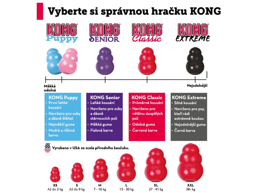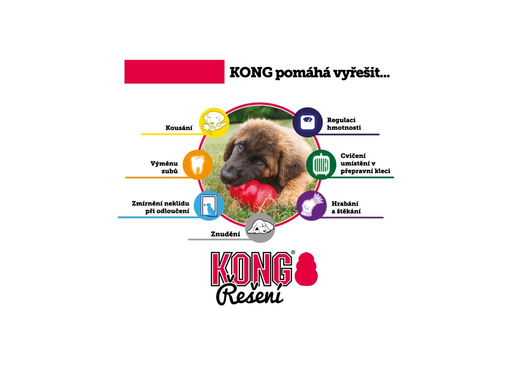 Mimořádně odolná hračka s nepravidelným odrazem, který je ideální pro psy, kteří rádi žvýkají nebo si hrají. Chcete prodloužit dobu hraní? Nezapomeňte ho naplnit lákavými kousky granulí nebo naplnit KONG pastou. Nabízí obohacení tím, že pomáhá uspokojovat instinktivní potřeby psů. Odolná guma KONG umožňuje měkčí a bezpečnější chytání při aportování. Podporuje zdravý pohyb a instinkt ke hře. Účinná výcviková hračka, která může pomoct při mnohých nežádoucích chování, jako je kousání věcí, nábytku, strach z odloučení, adaptace na nové prostředí nebo zabránění nudě.