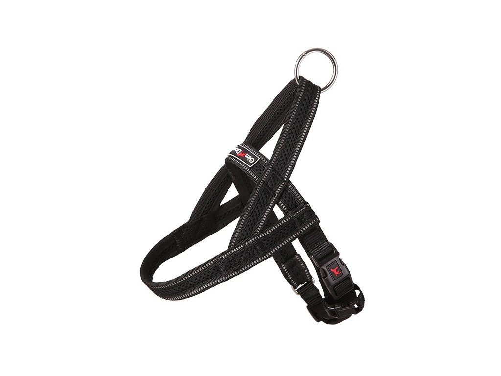 Postroj Gimborn Mesh Y je pohodlný a velmi praktický. Vhodný především pro velké psy. Disponuje reflexními prvky, díky kterým bude váš pes dobře vidět i za tmy. Má praktické ouško, za které lze psa přidržet. Vodítko se zapíná klasicky z vrchu, očko pro uchycení je dobře přístupné. Postroj se jednoduše nasazuje přes hlavu a zapíná se pod jeho hrudníkem, čímž odpadá mnohdy nepříjemná manipulace se psem. Disponuje nastavitelnými popruhy. Černá barva.