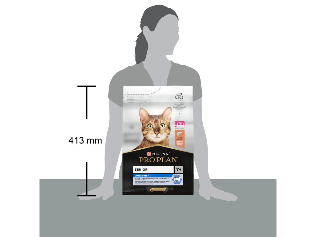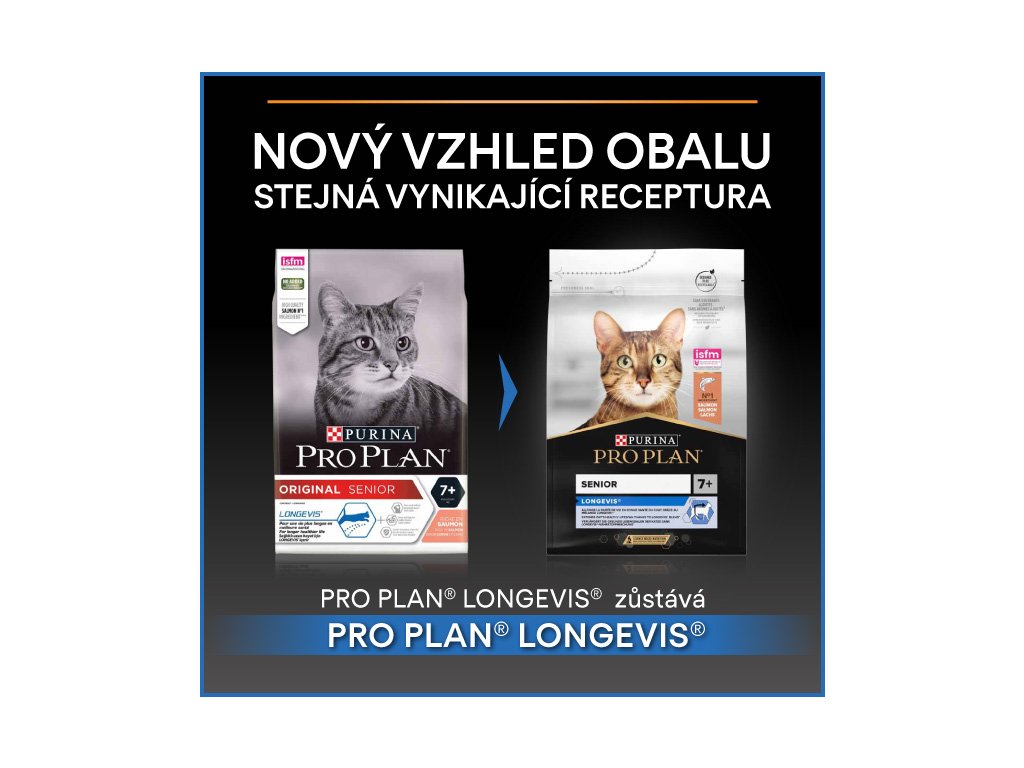 Krmivo pro kočky PURINA® PRO PLAN® LONGEVIS® obsahuje unikátní komplex LONGEVIS®, který prokazatelně oddaluje první příznaky stárnutí a prodlužuje zdravý život dospělých koček. Při pravidelném podávání toho krmiva se vaše kočka může radovat z delšího a zdravějšího života. Hlavní složkou jsou kousky lososa. Granule zároveň obsahují vysokou hladinu antioxidantů, argininu, omega 3 a 6 mastných kyselin a prebiotik, které podporují klíčové životní funkce, jako jsou imunitní systém, ledviny nebo trávení.