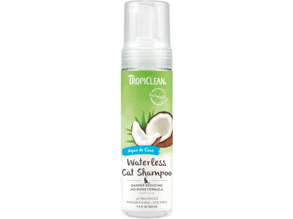 Bezoplachový šampon pro kočky Tropiclean s vůní kokosu je šetrný bezoplachový šampon, který efektivně čistí, provoní srst a zároveň hydratuje kůži koček. Praktický šampon zabraňuje vzniku lupů a šupinek kůže v srsti vaši kočky. Pravidelné používání tohoto jemného čistícího kokosového přípravku výrazně hydratuje pokožku a redukuje alergeny v srsti, takže i vaše kočka bude spokojená a zdravá.